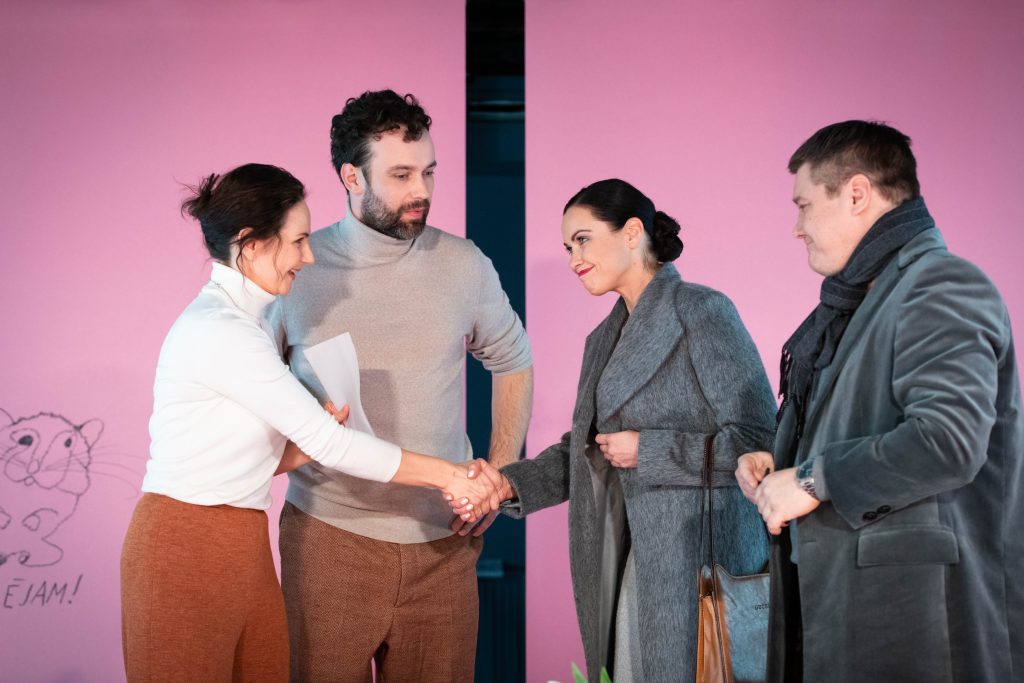 Lomās vadošie Nacionālā teātra aktieri – Evija Krūze (Skulte), Inga Misāne-Grasberga, Mārtiņš Egliens un Jānis Āmanis.