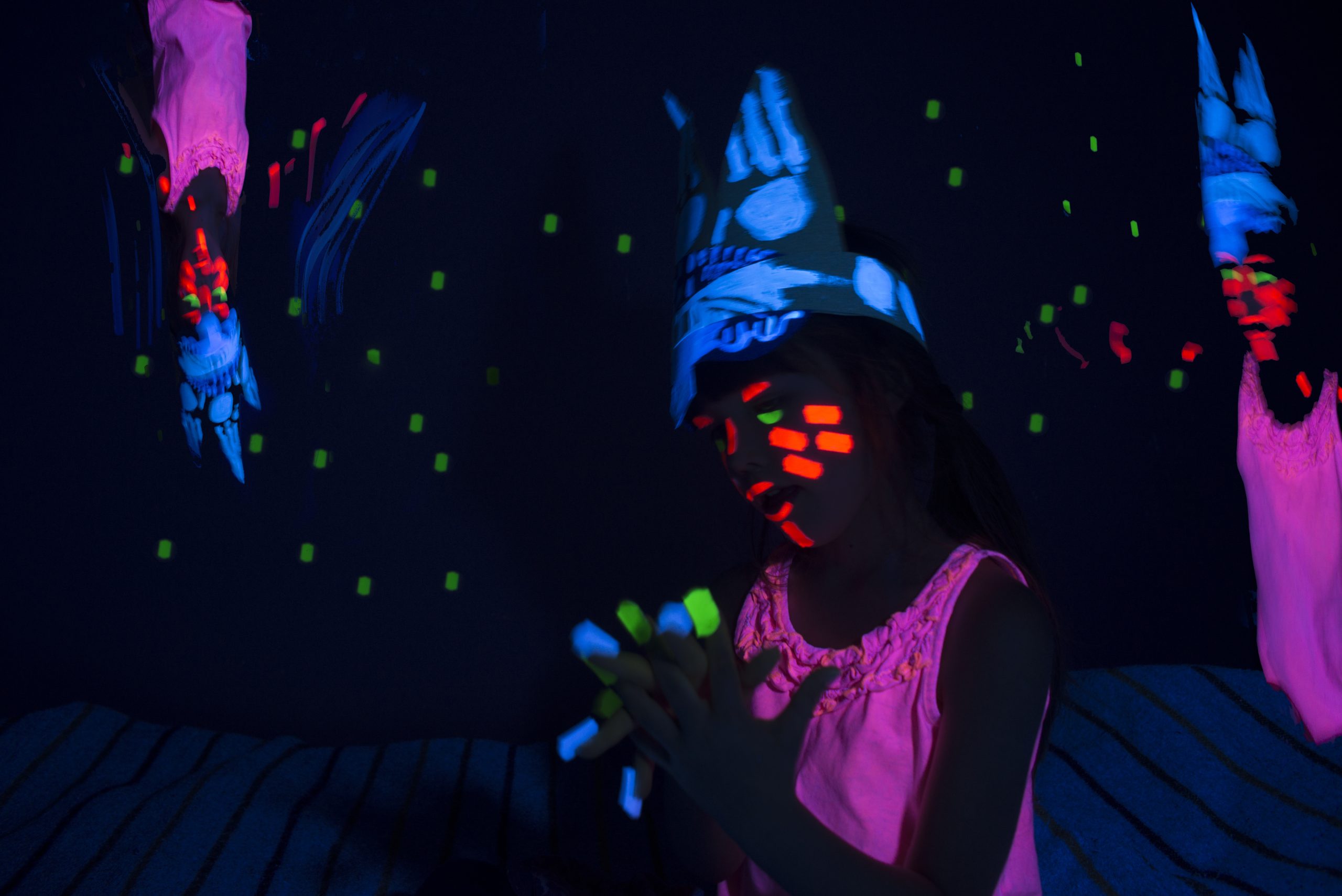 Darbnīcas ilgums ir divas stundas. Vecāki aicināti aktīvi piedalīties. Paredzēts darboties ar luminiscējošām krāsām, tāpēc ieteicams ierasties apģērbā, kuru nav bail nosmērēt. Būs iespēja pārģērbties.