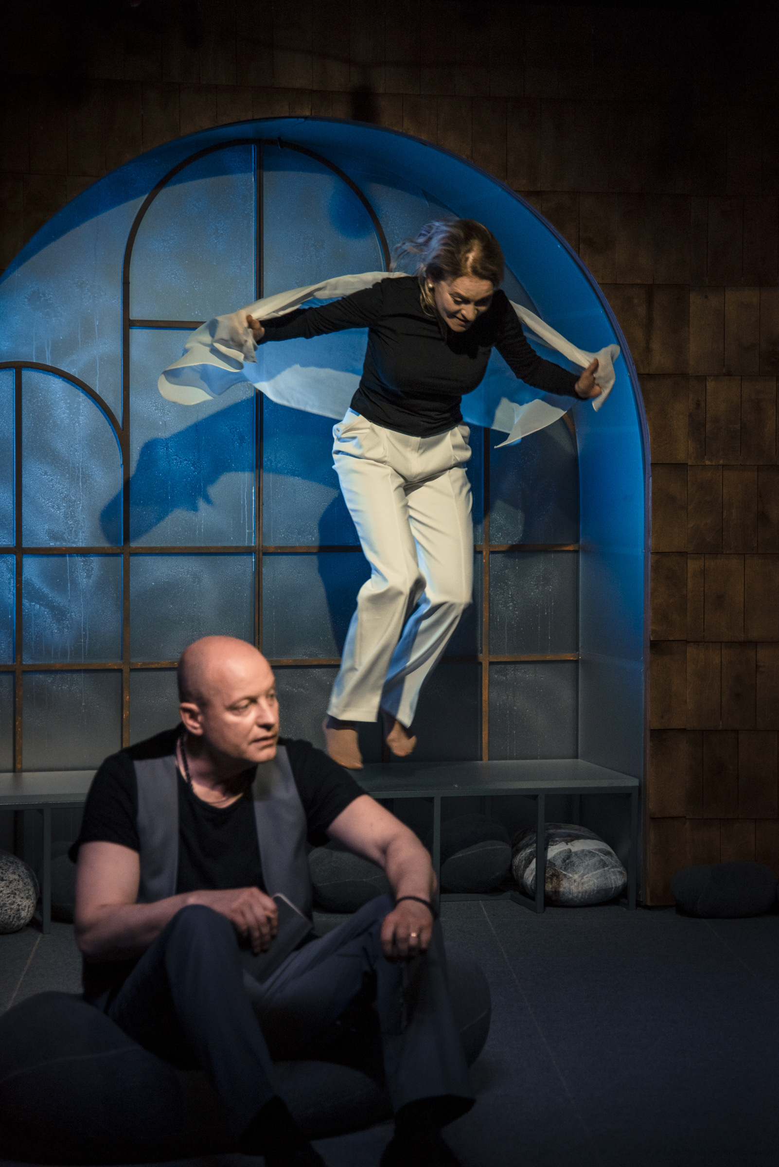 Šo mīlestības stāstu veido režisore Rēzija Kalniņa. Lomās Inese Kučinska (Viņa) un Ģirts Ķesteris (Viņš). Iestudējuma radošajā komandā vēl darbojas kostīmu māksliniece Ramona Lazda, kustību konsultante Linda Kalniņa un gaismu mākslinieks Rihards Sokolovs. Lugu no nēderlandiešu valodas tulkojusi Inese Paklone.