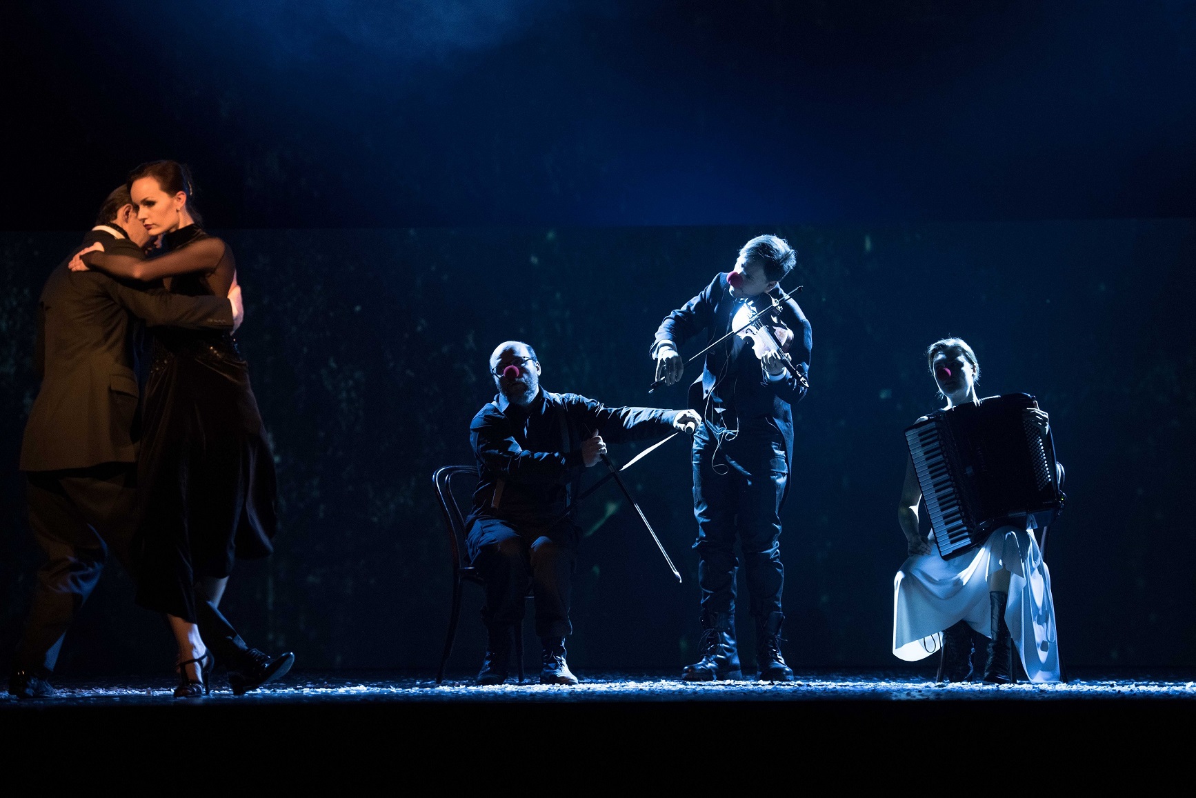 Koncertstāsts “Tango bez asinīm” uz Nacionālā teātra lielās skatuves savedīs kopā mūzikas pasauli, kaislību uz deju, teātra azartu, sapni par lidošanu un meklētāju instinktu. Tā pamatā ir brīva skatuves fantāzija par likteni, karu, dzīvību un nāvi, balstoties  dažādu autoru stāstos par Spāniju un pilsoņu karu. Paldies par iedvesmu Ernestam Hemingvejam, Artūram Kestleram, Alesandro Bariko un Antonio Mačado, kā arī Lorkas atrastajai duendei. Skanēs gan spāņu tautas mūzika, gan mūsdienu ritmi, arī dažādas valodas krāsainībai.