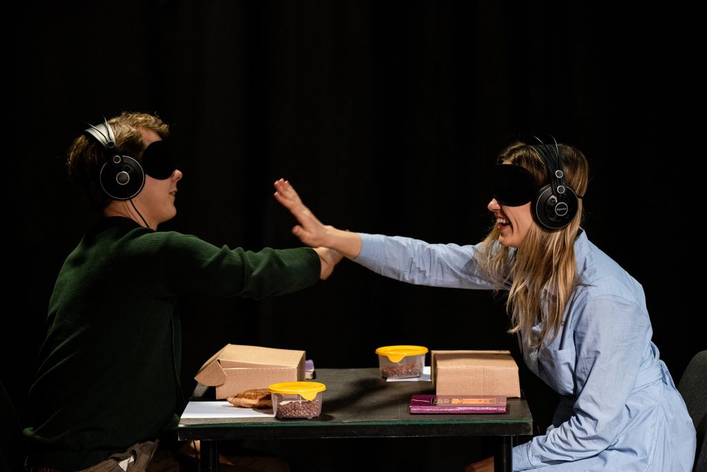Izrāde “Piramīda” ir eksperimentāli terapeitisks ceļojums emocionālajā pieredzē, kurā katram izrādes dalībniekam, mēģinot ierobežot kanoniskās cilvēka pamatvajadzības, tiek dota iespēja noteikt savu “laimes līmeni”. Šī būs intīma teātra pieredze, kurā gluži kā psihoterapeita kabinetā būs iespēja pētīt savas apslēptās un sociāli apslāpētās vajadzības. Izrāde veidota Latvijā līdz šim neatklātā sajūtu pieredzes estētikā, pilnībā izslēdzot redzes maņu un piedāvājot izrādes dalībniekiem doties dzirdes, taustes, ožas un garšas ceļojumā ar iztēles palīdzību.