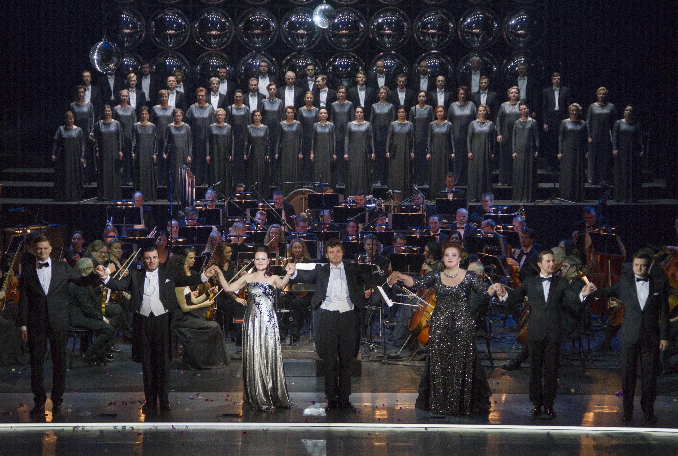 Koncertā piedalās rumāņu mecosoprāns Ramona Zaharija, gruzīnu tenors Iraklijs Kahidze, latviešu soprāns Margarita Vilsone, kuras radošais darbs norit Vācijā, un Latvijas Nacionālās operas solisti Ilona Bagele, Dana Bramane, Inga Šļubovska-Kancēviča, Raimonds Bramanis, Kalvis Kalniņš, Andris Ludvigs un Rihards Mačanovskis, kā arī Latvijas Nacionālās operas koris un orķestris. Koncertu vada Inga Šļubovska-Kancēviča un Edgars Ošleja.