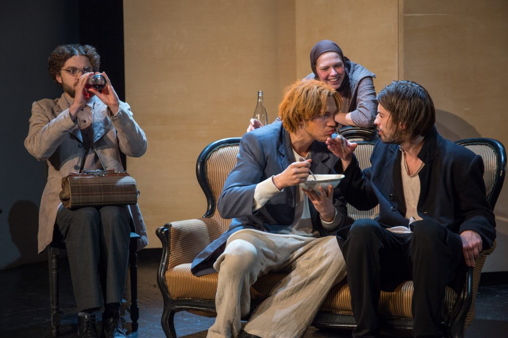 Novembrī Krievijas Valsts Skatuves mākslas institūta (KVSMI) profesora Venjamina Fiļštinska vadītā teātra režijas un aktiermeistarības studija svin 30 gadu jubileju. Šajā studijā savulaik desmit gadus kā pedagogs strādājis LKA asociētais profesors Mihails Gruzdovs. LKA Dramatiskā teātra aktiera mākslas 3. kursa studentus ar KVSMI institūta prof. Venjamina Fiļštinska vadīto aktieru kursu jau otro mācību gadu saista cieša sadarbība un draudzība. Līdz šim organizēti divi pieredzes apmaiņas braucieni – 2018. oktobrī KSVMI studenti ar izrādi “Bābas” pēc A. Čehova stāstu motīviem viesojās LKA skatuves mākslas festivālā “Patriarha rudens”, kā arī pēc tam divas dienas piedalījās nodarbībās kopā ar LKA studentiem. Savukārt 2019. gada aprīlī LKA studenti apmeklēja Sanktpēterburgu, gan profesionāli pilnveidojoties nodarbībās pie KVSMI pasniedzējiem, gan papildinot savu kultūras pieredzi, gan arī strādājot pie topošās izrādes.