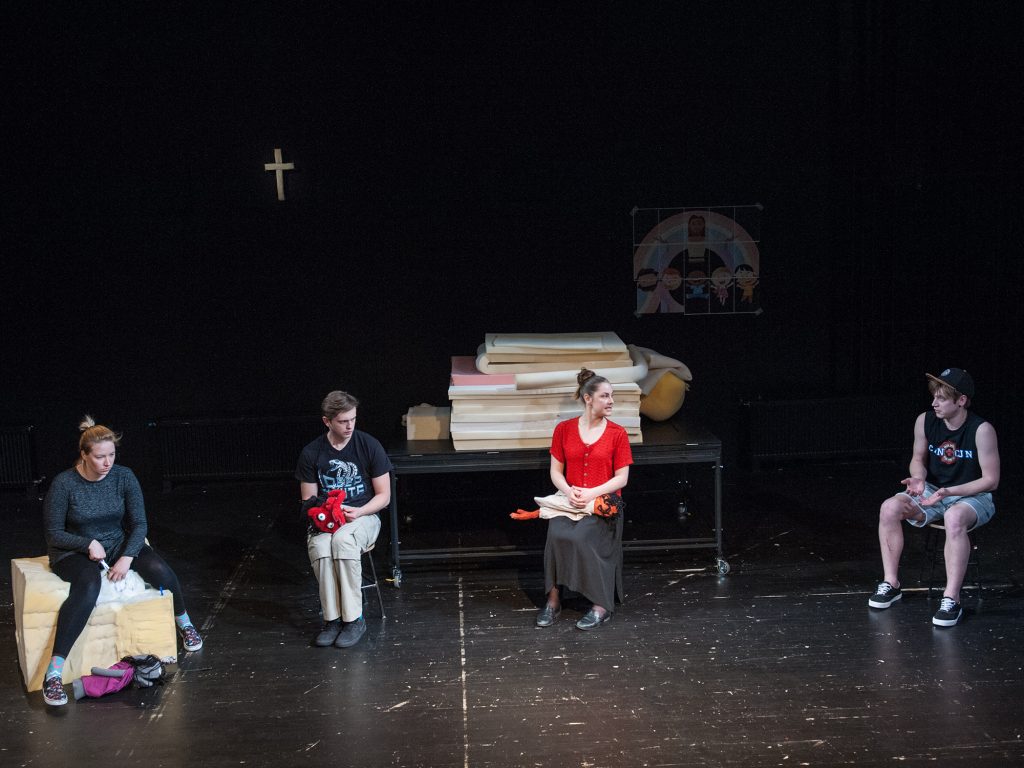 Amerikāņu dramaturga Roberta Askinsa humora pilnā luga, ko iestudējis režisors Kārlis Krūmiņš un LKA Leļļu teātra aktierkursa 2019. gada absolventi, spēlējas ar domu, ka cilvēkā ir kaut kas no labā un kaut kas no ļaunā, bet normāli būtu, ja abas šīs puses atrastos sabiedrībā pieņemtiem priekšstatiem atbilstošā līdzsvarā. Askinsa darbs 2014. gadā saņēma balvu kā gada labākā “Off-Broadway” luga. Vēlāk tā iestudēta arī Brodvejā un Londonā. Londonas iestudējums nominēts Tonija balvai piecās kategorijās, tai skaitā – gada labākā luga.