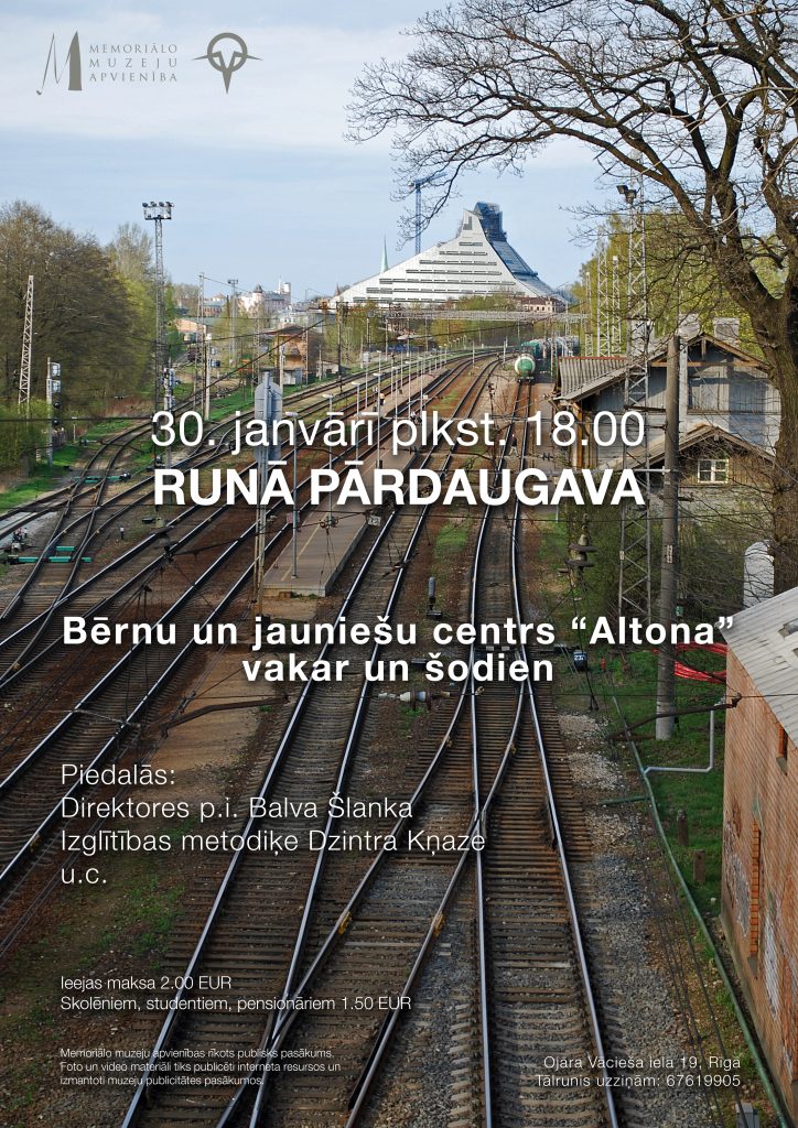 30. janvārī plkst. 18.00 Ojāra Vācieša muzejā (O. Vācieša ielā 19, Rīgā) sarunu cikla “Runā Pārdaugava” ietvaros notiks tikšanās ar bērnu un jauniešu centru “Altona”.