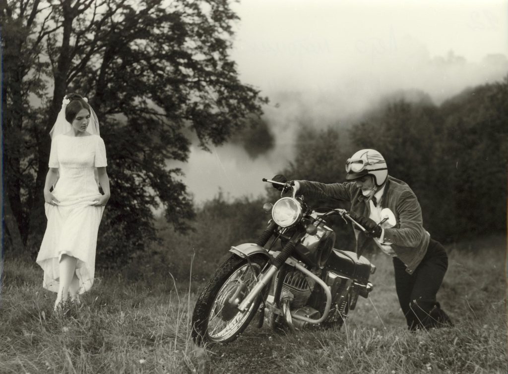 Režisors Uldis Brauns ir viens no slavenās Rīgas dokumentālās poētiskās kinoskolas pamatlicējiem. Savu rūpīgi izloloto un pa kadriņam izzīmēto vienīgo spēlfilmu – poētisku kino veltījumu  ātrumam un jaunībai – uzņēmis melnbaltā estētikā. Māris (Pēteris Gaudiņš) savā 18 gadus dzimšanas dienā saņem dāvanā motociklu, ceļā apdzen kāzu mašīnu, un nozog bez mīlestības izprecinātu līgavu (Inese Jansone). Ātrums, kaislības, romantika, filmēts Kuldīgas apkaimē un pašā Kuldīgā, kuras vecpilsētā atrodas arī Kalnciema kvartāla Kuldīgas rezidence.