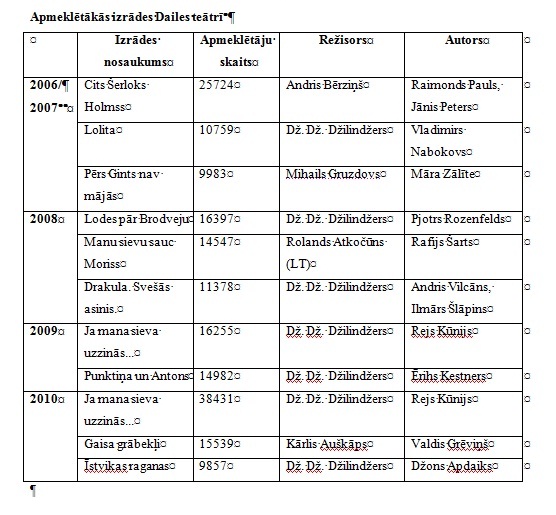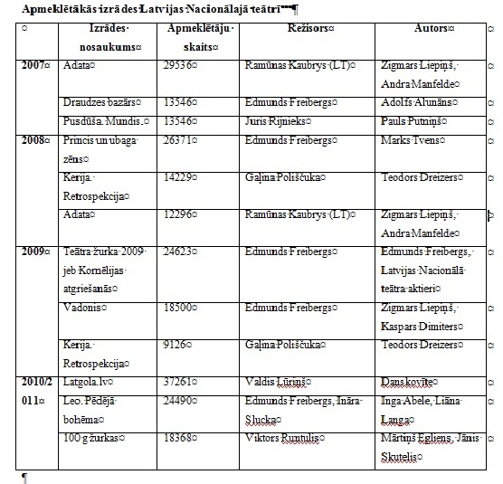 [40] Skat. 1. pielikumu Dati par apmeklētākajām izrādēm.