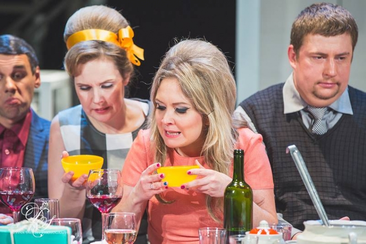 Polijas tagadne jeb ģimenes māte un viņas draudzene, kuras attiecīgi atveido Karīna Sidina un Žanna Lubgāne, ir dzīves nomāktas sievietes, kas sadzīves bezizeju cenšas iluzori pārvarēt, gremdējoties patērētājsabiedrības piedāvātajā fantāzijas pasaulē. (Pat ja viņas labi apzinās, ka nekas no šīs fantāzijas sludinātā reāli nav sasniedzams.) Meita jeb nākotne (Jeļenas Ņetjosinas brīnišķīga loma) par visu ironizē un visu noliedz. Savukārt Veras Hramņikovas spēlētā Vecmāmiņa jeb pagātne ir acīmredzami prātā vāja, nepārtraukti skatās Septiņpadsmit pavasara mirkļus un stāsta stāstus par Varšavas bombardēšanu Otrā pasaules kara laikā. Kādas ir viņu attiecības? No vienas puses, D. Maslovskas teksti ir pietiekami agresīvi, lai pieļautu, ka attiecības var būt galēji antagonistiskas. Tas vismaz daļēji atbilst arī poļu jaunākās paaudzes dzīves izjūtai, kuri – droši vien līdzīgi kā daudzi latviešu jaunieši – ir noguruši no nemitīgajiem stāstiem par vēsturi un uzskata, ka, fiziski un metaforiski runājot, sabiedrībai ir jābeidz pārēsties (vai nu tas būtu preču vai leģendu pārsātinājums), lai no šodienas šaurās bezizejas izkļūtu. No otras puses, vismaz L. Sosnovskas versijā visu trīs sieviešu attiecības īstenībā ir ļoti tuvas, agresīvajiem vārdiem kalpojot drīzāk par masku, aiz kuras noslēpt sirsnību citai pret citu. Sirsnību, kas skarbajos dzīves apstākļos šķietami nav iederīga, bet acīmredzot ļauj izdzīvot.