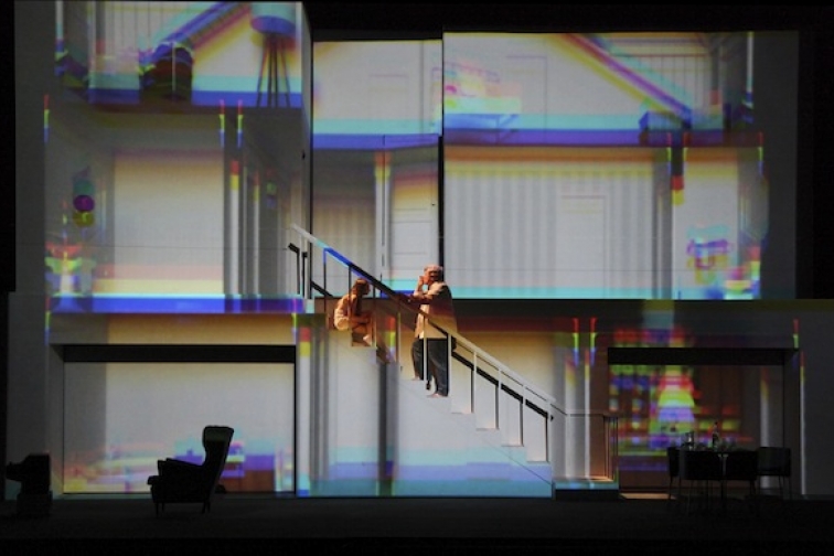 Līdzīgi kā „Krečinska kāzas”, arī Majakovska teātra „Augusts: Osedžas zeme” pārsteidz un gandarī vispirms jau ar scenogrāfiju. Skatuves kārbā gan neieraugām neko neparastu vai oriģinālu, ja atceramies, ka dzīvojam 21. gadsimtā jeb izteiktā tehnoloģiju laikmetā. Mākslinieks Gints Gabrāns Vestonu ģimenes māju rāda video formātā, uz baltas sienas projicējot kādas privātmājas interjeru un eksterjeru (atkarībā no attiecīgās ainas vajadzībām, tas ir pirmais stāvs, augšstāvu guļamistabas vai mansards utt.) gandrīz reālā izmērā. Šajā sienā viegli izbīdās vai iebīdās atsevišķi posmi abpus kāpnēm, kas atrodas spēles laukuma vidū, baltās sienas priekšpusē. Tonāli izrādi raksturo zili zaļais un visdažādāko toņu brūnās un pelēkās variācijas. Fons ar digitālajām 3D ilustrācijām skatuviskajām norisēm ir viegls un gaisīgs, izceļot tieši attiecības, psiholoģiskos konfliktus, tātad – pašu Treisija Letsa stāstu. Un savstarpējo attiecību mežģīnes Vestonu ģimenes locekļu starpā šajā iestudējumā ir sastrādātas līdz niansēm, šī dzīvā teātra notikumiem sekoju ar interesi, neraugoties uz to, ka tikko bija pārlasīta luga un tikai pirms gada šīs pašas lugas iestudējums skatīts Latvijas Nacionālajā teātrī.