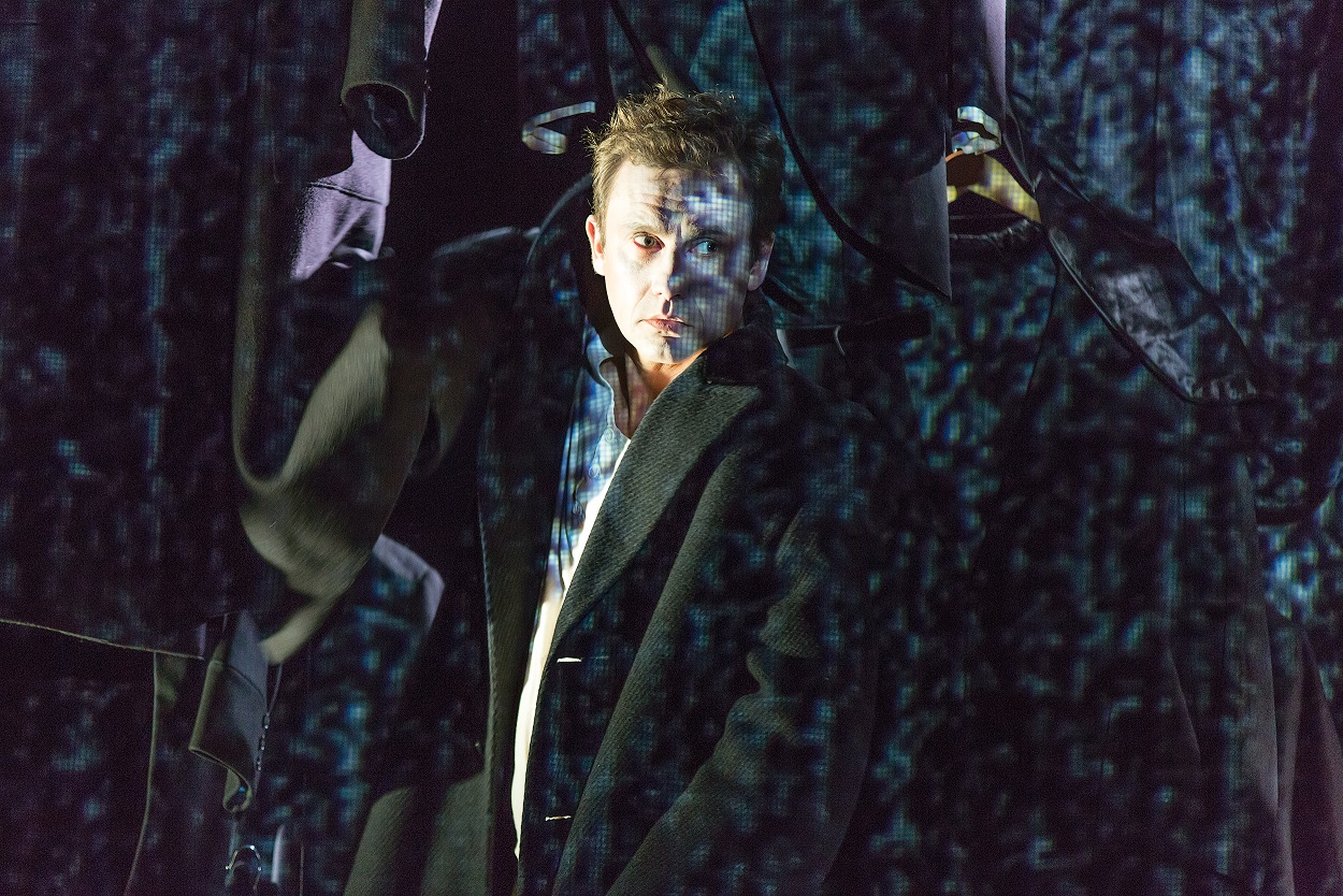 Nacionālā teātra Aktieru zāles pagrabs ar zemajām velvēm rada iespaidu, ka izrādes pasaule ir varmācīgi sapresēta un sprāgst laukā no telpas šaurības. Gan tāpēc, ka Edgara Mākena vokāli instrumentālais muzikālais noformējums izceļas ar plašu, teju vai brīvdabas estrādei piemērotu skanējumu, gan arī tāpēc, ka scenogrāfs Aigars Ozoliņš kulišu un dibensienas prospekta vietā vairākos līmeņos sakarinājis neskaitāmus apģērba gabalus. Spēles laukums atgādina garderobi, kur bez jēgas svārku, brunču, bikšu, blūžu un līdz ar tām arī sociālo lomu un ideju, kuras cilvēks var valkāt saskaņā ar savu garastāvokli un nepieciešamību. Melnbalti drebelīgajās gaismās šī lupatu pārbagātība šķiet kustamies kā skudru pūznis, no kura cita pēc citas iznirst darbības personas, lai pastāstītu katra savu stāstu.