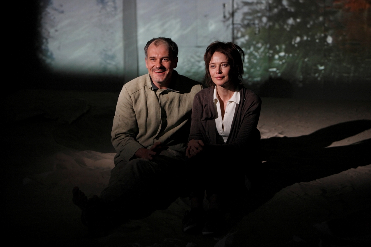 Elita Kļaviņa un Andris Keišs izrādē „Stum, stum” // Foto – Ansis Starks