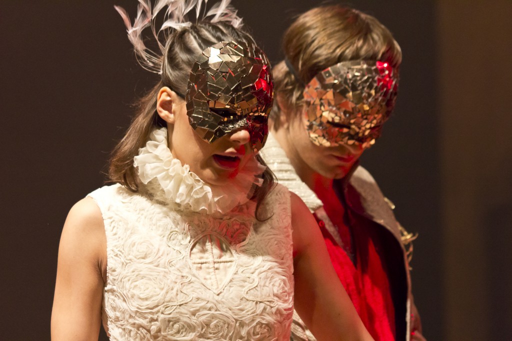 Izrādes ritmu un atmosfēru diriģē vecā paaudze – drūma un izsīkusi, saindējusi pasauli ar savu abstrakto naidu. Visi, pat aukle, visur iet ar zobenu rokās. Balle norit bez prieka un ātri beidzas. Nāve ir ikdiena, cilvēka dzīve var būt taureņa dzīves īsumā. Pārguruši, izsmelti, vecie nekam un nevienam cenšas nepieķerties, jo to var kuru katru brīdi zaudēt. Šis smagnējais, rezignējošais temps pārņēmis izrādi. Tam kontrastā ir dramatiskais teksts – notikumi tiek strauji triekti uz priekšu, jo dzīve jāizdzīvo maksimāli intensīvi. Vārdi liecina par ļoti intensīvu jūtu attīsību, bet viss notiek ātrāk, nekā galveno lomu tēlotāji to spēj nospēlēt un skatītājs noticēt.