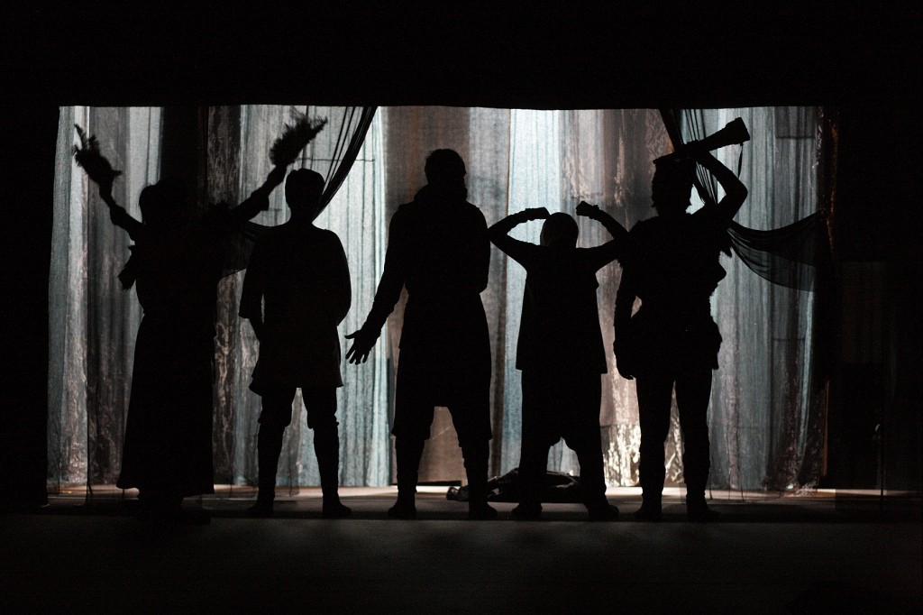 Šādā apziņas/neapziņas plūsmas situācijā dažu aktieru tēli, kaut arī tiem libretā dots pat vārds, faktiski kļūst par anonīmām masas vienībām; tas, piemēram, attiecas uz Ģirta Krūmiņa Vadi, kuru no pārējiem atšķir vien zvērādām pa slāvu modei apšūtā cepure. Vēsturē (?) jeb teātra apziņā (?) lielā mērā izkusis pat teātra pašsacerēto izrāžu entuziasts ar lielo pieredzi Vilis Daudziņš, ja atskaita dažas plastiski izteiksmīgas aktiera pozas kā ēnu spēles laikā, tā atveidojot senlatvieša profilu ar pūšamo ragu pie lūpām. Taču ir kāda visu aktieru spēlei kopīga iezīme, atkal nezinu, jauša vai nejauša: kad viņi ir vāci, tad spēlē nopietni, kad leti – ar vieglu ironiju, tēlos akcentējot vientiesību, bērnišķību, komismu. Varbūt šāda pieeja izstrādājusies, tā teikt, tehnisku apstākļu dēļ: kaut kā taču spēlē viņiem jāatšķir viena tautība no otras. Taču šis tehniskais apstāklis negaidītā veidā kļūst par ļoti nopietna ideoloģiskā uzstādījuma paudēju, jo pārstāv tipisku vācbaltu kolonizatoru viedokli par pagāniem kā mežoņiem vai, labākajā gadījumā, neattīstītiem bērniem.