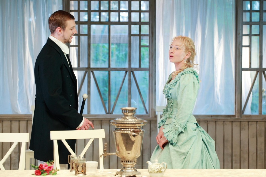Pievolgas pilsētas dzīves saimnieki izrādē ir Agra Māsēna Knurovs un Krišjāņa Salmiņa Voževatovs. Abu tirgotāju elegantajā duetā aktieriem un režisoram licies būtiski uzsvērt to, ka atšķirībā no pārējām darbības personām viņu spēlēs un intrigās runa nav par izdzīvošanu, bet par dzīves kvalitāti. Māsēna savaldīgajam, augstprātīgajam Knurovam acīmredzami pietrūkst jaunības skaistuma, Salmiņa Voževatovam – dzīves garšas asuma, ko viņi cer atrast Larisā.