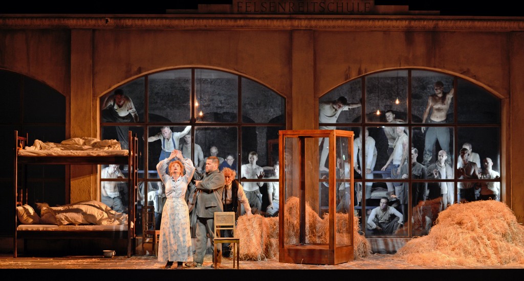 Ļoti īpaša un Cimmermana operas uzvešanai ideāla ir pati izrādes notikšanas vieta. Tā ir septiņpadsmitā gadsimta beigās izveidotā Zalcburgas „Felsenreitschule”. Zirgu skola. Ar milzīgām arkādēm izdobtu klinšu sienu, kurās reiz sēdēja skatītāji un vēroja zirgu dresūru sev dziļi lejā, zem kājām. Tagad šī klints siena ar arkādēm ir kļuvusi par izrāžu dabisko fonu, skatītājs ir pārvietots, nosēdināts tai tieši pretī. Skatuvei tikpat kā nav dziļuma, bet ir ne ar vienu skatuvi nesalīdzināms, četrdesmit metrus liels platums.