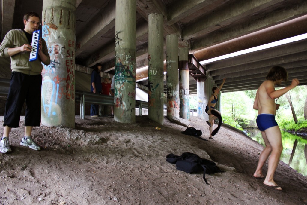 Pēc tam, kad pārgājiens beidzies, tomēr rodas jautājums, cik lielā mērā Mārupītes krasts ir mākslīgi pielāgots izrādes vajadzībām. Vai vide ir tikusi iepriekš sagatavota: drazas pārceltas cita citai tuvāk un izmestais vecais matracis pavērsts skatam no neglaimojošākās puses? Cik (ne)jauši ir visi cilvēki, kurus gadās sastapt pa ceļam? Tomēr šīs „sagataves” nav uzbāzīgas un to varbūtējais inscenējums nav pašmērķīgi sekls. Iepriekš izdomāto scenāriju saplūsme ar tagad notiekošo risinās viegli rotaļīgi. Virzošais spēks ir izrādes veidotāju harizmātiskās personības. Viņi nemēģina uzdoties par tiem, kas paši nav. Un panāk nepiespiestas izturēšanās atmosfēru.