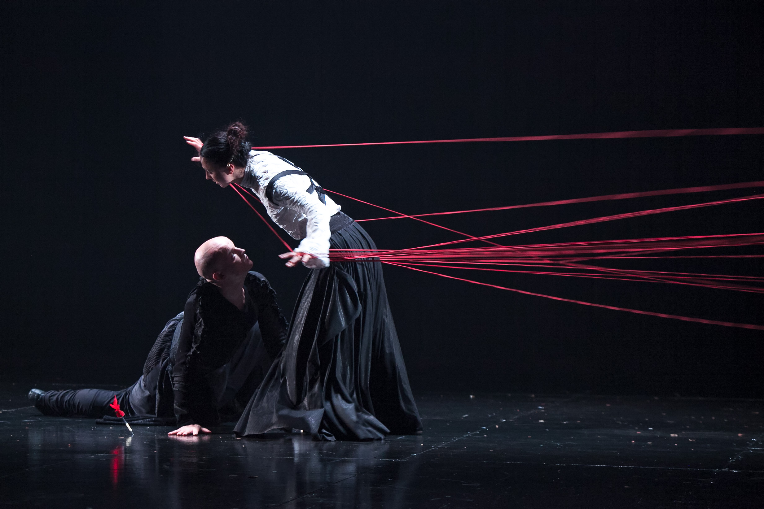 Manī slikti iesūcas simboli un metaforas, tie drīzāk mani sakaitina kā bulli sarkana lupata, lai gan neapšaubāmi i šautriņu lietus, i baļķa krišana no debesīm, i šļūkšana uz mātes kleitas astes, i ribu virināšana, i džedaju zobeni un samuraju bruņas, i bālie žagari kā nāves pirksti ir ļoti iespaidīgi (scenogrāfs/kostīmu mākslinieks Maksims Obrezkovs). Un brīžos, kad lietas veic kustības funkciju, gūstu arī kinētisku pieredzi. Man gan labāk patīk atcerēties cilvēku, nevis lietu kustību.