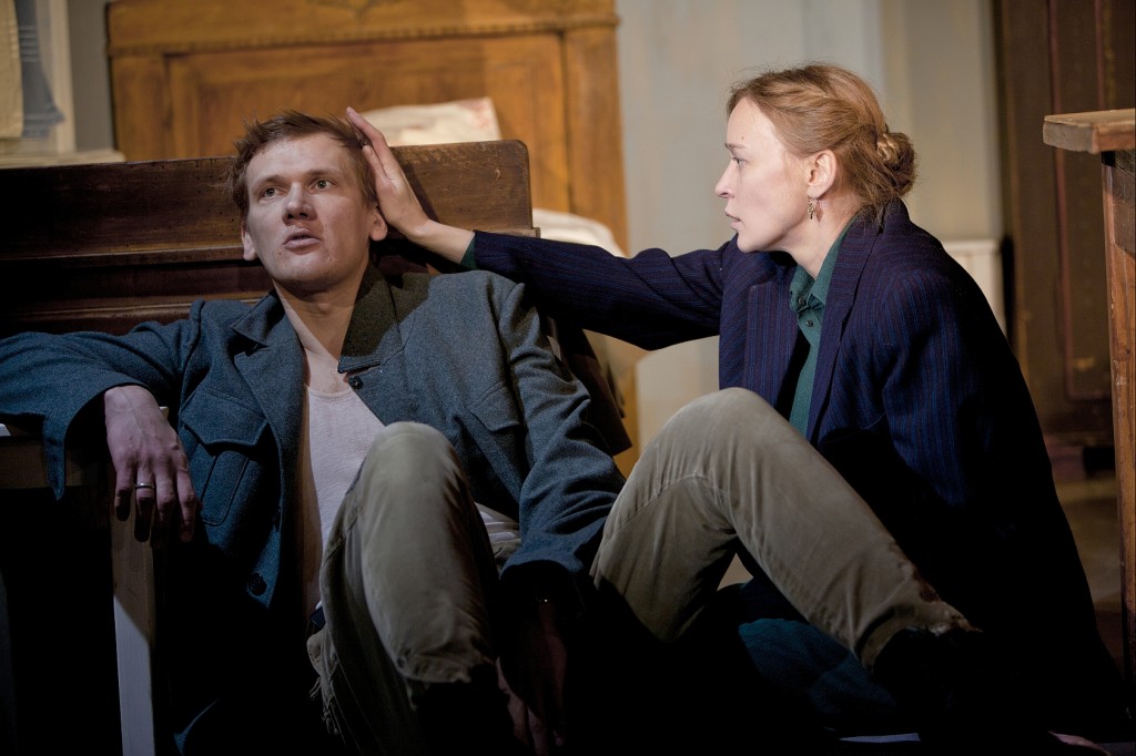 Gatim Gāgam viņa izdevīgo ārējo dotumu dēļ aizvien biežāk piedāvā mīlētāju lomas (iepriekšējā pirms pāris mēnešiem – Šamanovs A. Vampilova Čulimska. Pašu ļaudis, tagad Hanss), taču aktierim ir kāda profesionāla problēma, kuras dēļ nospēlēt mīlētājus viņam neizdodas. Aktieris lāga neprot uz skatuves dibināt kontaktu ar partneri, viņš neredz to, nenovērtē, bet runā kaut kur uz to pusi savu tekstu. (Tas jau īstenībā svarīgi visās, ne tikai mīlētāju lomās.) Jaunajā izrādē ir kāda aina, kur aktieris redz partneres, tādēļ arī spēj pārliecinoši atklāt mīlestības mošanos pret Alīdes māsu – Baibas Brokas Ingelu. Turpmākajā uzveduma gaitā visa atbildība par šā pāra laimīgo ģimenes dzīvi tiek uzvelta vienīgi Baibai Brokai, kurai gandrīz vai izdodas neiespējamais – nospēlēt mīlestību par abiem. Aktrise piešķir Ingelai siltu acu skatienu, valšķību un vienlaikus laimīgas sievietes harmoniju. Un – dzīvotprieku, pacilātību, darot pat sīkus ikdienas darbus. Nav tā, ka Gatis Gāga Hansa lomā nenospēlē neko. Viņa varonis, slepus pārradies no mežabrāļu gaitām, ļauj, lai sievietes to paslēpj, pašas turpmāk ik dienu riskējot ar savu dzīvi un pat dzīvību. Viņš raksta dienasgrāmatu, ko paraksta kā brīvās Igaunijas zemnieks, nosoda Alīdi par ideālu nodevību, kad tā apprecas ar poļitruku, kas īstenībā garantē kaut kādā mērā tieši viņa drošību… Ir allaž saīdzis, gaida atbrīvotājus te no Anglijas, te no Amerikas. Protams, grūti pārmest Hansam bezdarbību, jo ko gan viņš reālajā situācijā būtu varējis pasākt. Ja nu vienīgi iet mežā, kā daudzi tūkstoši citu. Taču izrādes gaitā pamazām sabiezē netīksme pret Hansu, kura vietā dzīves reālo smagumu iznes trīs sievietes (viņa mazgadīgā meita čekā tiek spīdzināta), kamēr viņš slēptuvē kopj ideālus. Hansa egoistiskā rakstura kontekstā saprotama un pat attaisnojama liekas Alīdes rīcība, kad pēc mocībām čekas pagrabā tā apprecas ar poļitruku Martinu, ko Jevgeņijs Isajevs tēlo kā nepievilcīgu – gļēvu un izplūdušu – vīrieti. Ja savējie nevar, tad ienaidnieks varēs – pasaudzēt, aizsargāt.