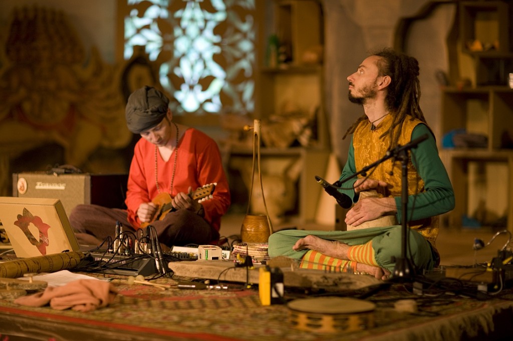Indiešu pasaku tandēms lika man atcerēties bērnību. Māras Ķimeles pēc Vecās Derības veidotā „Rutes grāmata” (1994), kuru izrādīja šajā pašā zālē un kura pamatā bija uz pieaugušo auditoriju orientēta izrāde, vienpadsmit gadu vecumā uz mani atstāja tādu iespaidu, ka ar pārsteigumu nesen konstatēju – iestudējums atmiņā pat detaļās saglabājies labi un, iespējams, lielā mērā ietekmējis manas pašreizējās intereses un gaidas teātrī. Arī „Rutes grāmata” ieveda mitoloģiskā laika cikliskajā, ne vēsturiskā laika lineārajā pasaulē. Ievas Zoles grāmatā „Sarunas ar Māru Ķimeli” režisore stāsta, ka uz izrādi nākušas ģimenes pat ar zīdaiņiem un bērnus varēja laist spēles laukumā skriet līdzi ar aktrisēm. „Rutes grāmatas” tapšanas periodā Māru Ķimeli īpaši interesējusi iespēja ar varu neierobežot izrādes laika un reālā dzīves laika saplūsmi. Arī „Nijaramas pasakās” un „Pasakās par zvēriem” izrādes laiks kalpo kā aktieru un skatītāju kopā būšanas brīdis, kura sākums un beigas nav krasi atdalīti no „īstās” dzīves. Kad publika ierodas zālē, aktieri un mūziķi jau brīvi rosās spēles laukumā. Izrādes laikā aktieri gan ar skatieniem, gan vārdiem komunicē ar bērniem, kuri arī aktīvi atbild un iesaistās, brīžiem savā starpā pretrunīgi komentējot pasakā notiekošo. Otrajā „Nijaramas pasaku” skatīšanās reizē, kad centos izrādes gaitu fiksēt vairāk racionāli, ne atmosfēriski un emocionāli, novēroju, ka izrādes pilnībā pārņemti skatītāji rodami gan priekšējās rindās izvietotajos mazajos krēsliņos un uz matračiem, gan pēdējās rindās sēdošo tēvu un māšu vidū. Turklāt vairākas pieaugušo kompānijas pat bija ieradušās bez „alibi” – proti, bērniem.