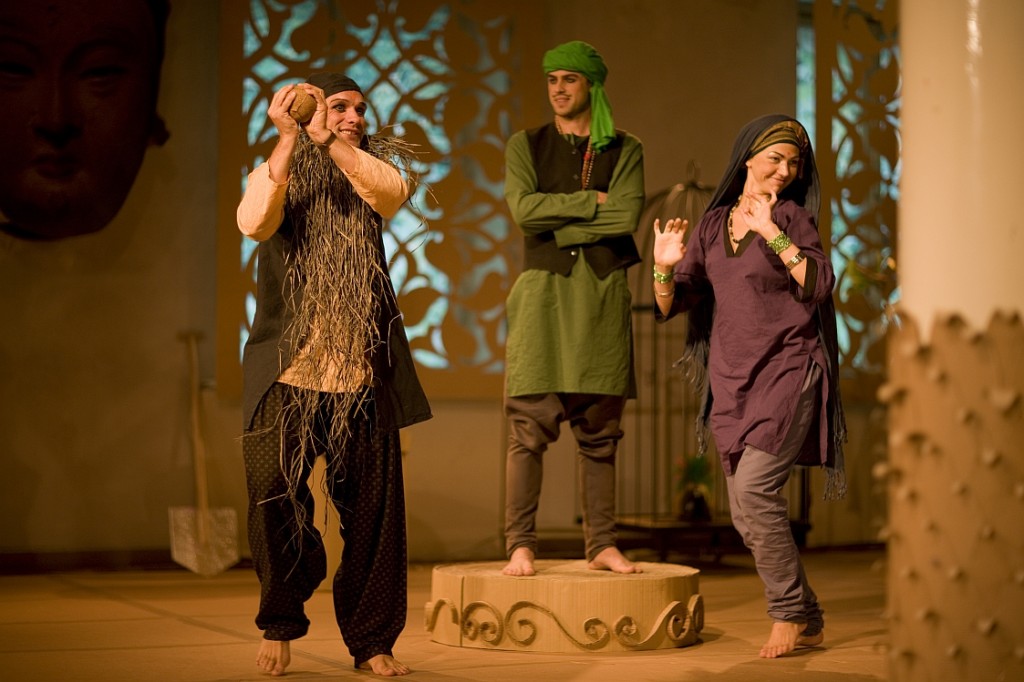 Jaunā Rīgas teātra Kamerzālē šajā rudenī tapis izrāžu diptihs bērniem „Nijaramas pasakas” un „Pasakas par zvēriem”. No sākotnēji režisores Māras Ķimeles iecerētā viena iestudējuma „Nijaramas pasakas”, radošās komandas aizrautības un spēles prieka dēļ izaugusi vēl otra izrāde. Abas tiek spēlētas vienā scenogrāfijā, izmantojot tos pašus rekvizītus („Zvēros” gan daļa no tiem netiek iesaistīti darbībā), vienotus aktierspēles, kustību un skaņu veidošanas principus. Noskatījos abas izrādes, bet pievērsīšos vairāk „Nijaramas pasakām”, kuru kopējā struktūra šķiet mērķtiecīgāk plānota un būvēta.