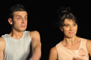 Arī tur tika risināta sievietes un vīrieša attiecību tēma, tikai jau ilgāku laiku kopā esoša pāra dzīvoklī, kur viesojas rutīna. Izrāde ar vizuālo projekciju palīdzību, paša režisora dadaistisko „aizkadara” balss stāstījumu un pavedinošās dejotājas Elīnas Lutces graciozi izaicinošās cepešpannas kaislības un balto augstpapēžu kurpju (ar dzeltenajām bantītēm) asums* un viņas vīra darba portfeli un lāča masku nēsājošā Andreja Filipova kustību gammām ir aizraujoša. Lai arī attiecību risinājums ir dziļi individuāla padarīšana, tomēr cilvēka dabā ir salīdzināt savu dzīvi ar tām, ko var vērot uz skatuvēm, meklējot ne vien līdzības, bet arī veiksmīgākos risinājumus problēmsituācijām. Arī šīs abas izrādes nav izņēmums. Skatītājs piedalās un reaģē.