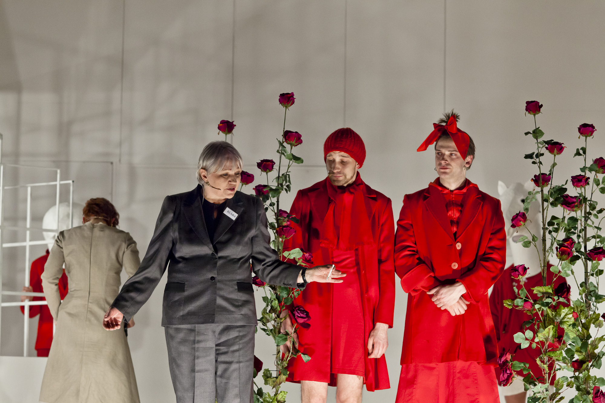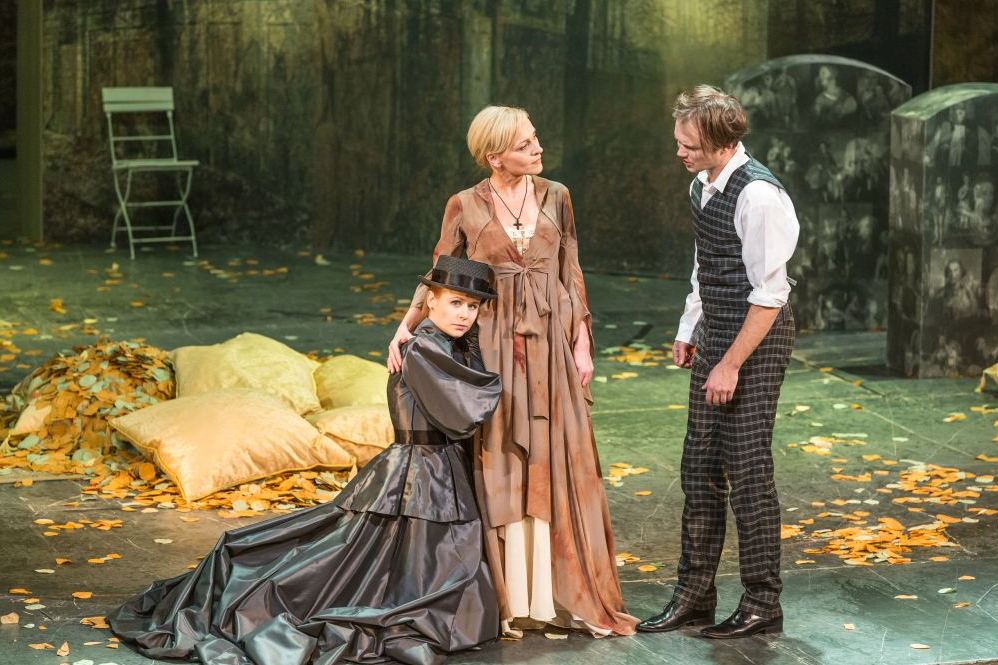Inese Kučinska (centrā) Nacionālā teātra izrādē „Sieviete, kura nav uzmanības vērta” // Foto – Gunārs Janaitis