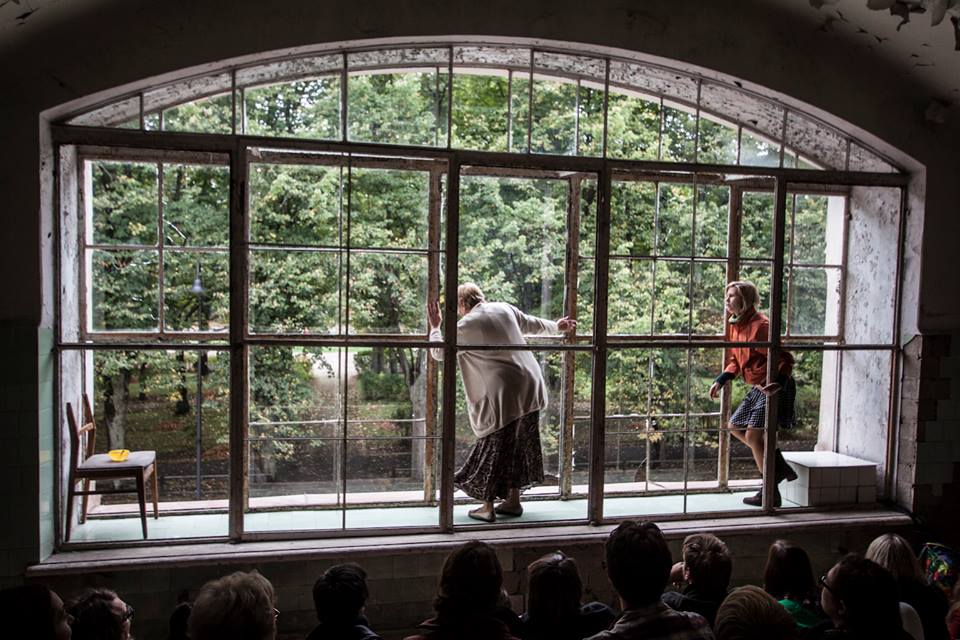 Savdabīgs un ļoti interesants telpas, laika un teksta savienojums bija režisora Viestura Roziņa veidotais Mazmeitas un Vecmāmiņas dialogs jaunās aktrises Laumas Balodes un Daugavpils teātra ilggadējās aktrises Veras Hramņikovas izpildījumā. Tas notika bijušajā operāciju zālē. Ieejot tajā, skatītāji juta nekad neiznīdējamo lizola un zāļu smaržu. Tā negribot rosināja iztēli par pagātnes traģiskiem notikumiem, neskaitāmu ārstu nebeidzamo cīņu par pacientu dzīvībām, par mūžseno dzīvības un nāves sadursmi. Justīnes Kļavas teksts Viestura Roziņa risinājumā šai telpā skanēja gaiši un optimistiski. Skatītāji tika nosēdināti iepretim lielam logam, aiz kura redzams parks un aleja. Kādreiz šai parkā pastaigājušies apārstētie karavīri. Sāka skanēt Mazmeitas un Vecmāmiņas dialogs. Mazmeita iedrošina Vecmāmiņu doties uz telpām, apģērbt svētku tērpu, varbūt aiziet uz kādām viesībām. Aktieri nav redzami, ir tikai skaņa. Tikai pēc laba laika ieraugām, ka darbība notiek aiz loga. Pa parka aleju nāk un sarunājas Mazmeita un Vecmāmiņa. Viņas uzkāpj pa kāpnēm, ienāk telpā pie skatītājiem, uzkāpj uz lielās palodzes. Vecmāmiņa vēlas apģērbt svētku tērpu, Mazmeita tai palīdz. Svētku tērps gan ir parasts mājas halāts un svētku kurpes – mīkstas čības. Sapņi, vēlmes, ilgas un dzīves skaudrā, nepievilcīgā realitāte tiek izspēlēti telpā ar sensenu stāstu par dzīvības un nāves nebeidzamo cīņu. Mīlestība un maigums, kas jūtams Laumas Balodes un Veras Hramņikovas tik vienkāršajās, ikdienišķajās sarunās, šķiet, piepilda šo operāciju zāli ar siltu, nomierinošu gaismu.