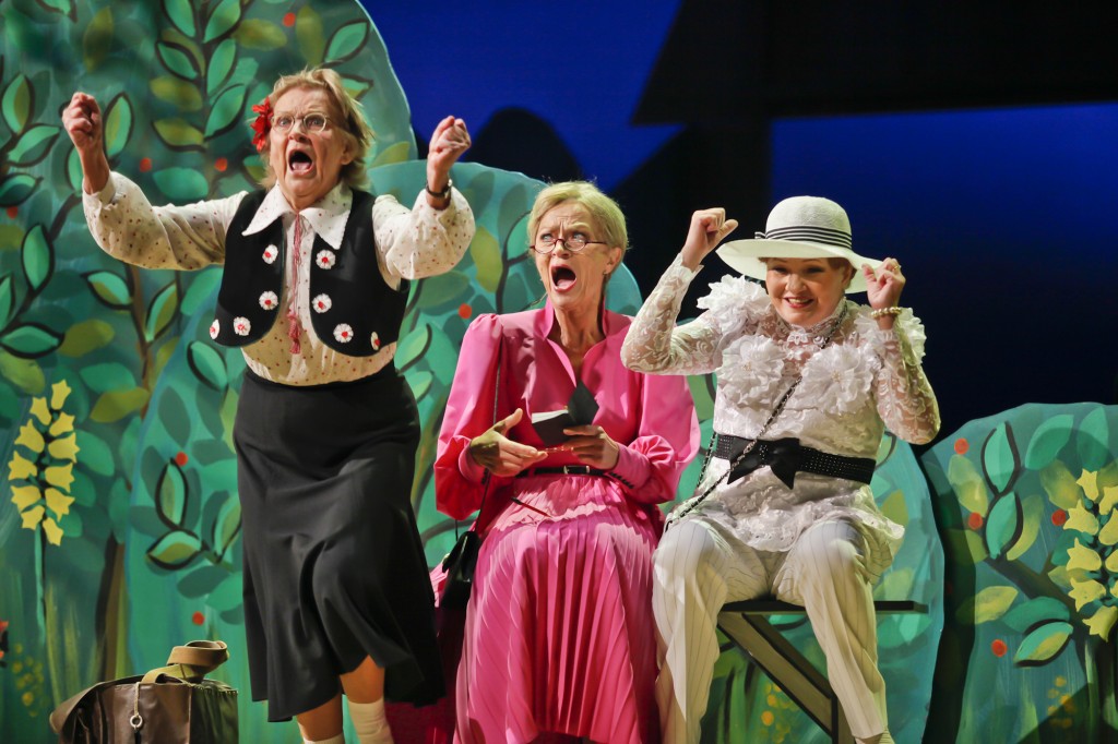 Neticami, bet pirmizrādē zāle tikpat kā nesmējās, kaut teksts ir asprātīgs un aizkustinošs. Internetā kāds skatītājs izteicās nogalinoši – netērējiet naudu un laiku, labāk apmeklējiet amatierteātri! Melotu, ja apgalvotu, ka Kapusvētku laikā šādas domas nenāk prātā. Tomēr noslēgt gribu ar diviem ievērojami priecīgākiem konstatējumiem. Proti, ar neatslābstošu interesi viscaur izrādē iespējams sekot notikumu centrā esošā trio darbībām – Inta Tirole (Alma Bērziņa), Līga Liepiņa (Marija Kalniņa) un Lolita Cauka (Līze Liepiņa) radījušas odziņas, ne lomas. Īpaši jau L. Cauka, kuras pensionētajā bibliotekārē iezibas te Mēdejas līmeņa intrigante, te – kāda no apgarotām svētajām. Bez tam – esam tikuši pie asprātīgas komēdijas teksta. Cerams, ka to drīz iestudēs kāds cits teātris.