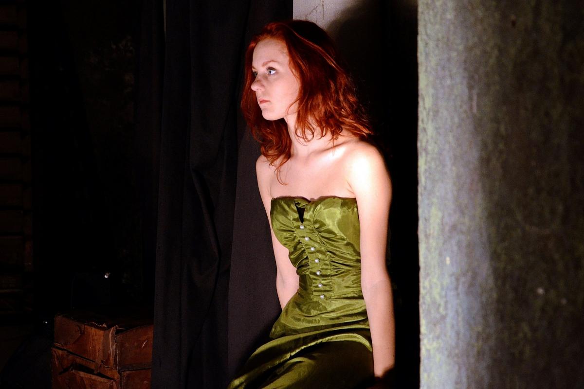 Ance Muižniece Guntras lomā teātra „Skatuve” izrādē „Naktssargs un veļasmazgātāja” (2014) // Foto – Linda Lagzdiņa