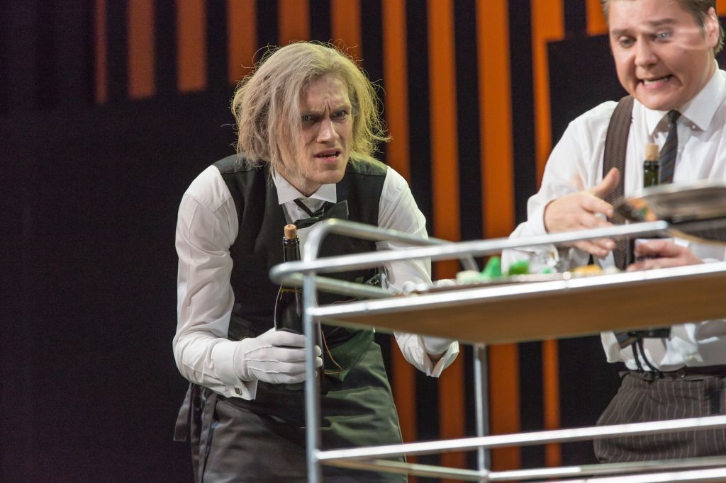 Kaspars Aniņš Alfija lomā izrādē “Divu kungu kalps. Anno 1963” (2013) // Foto – Gunārs Janaitis