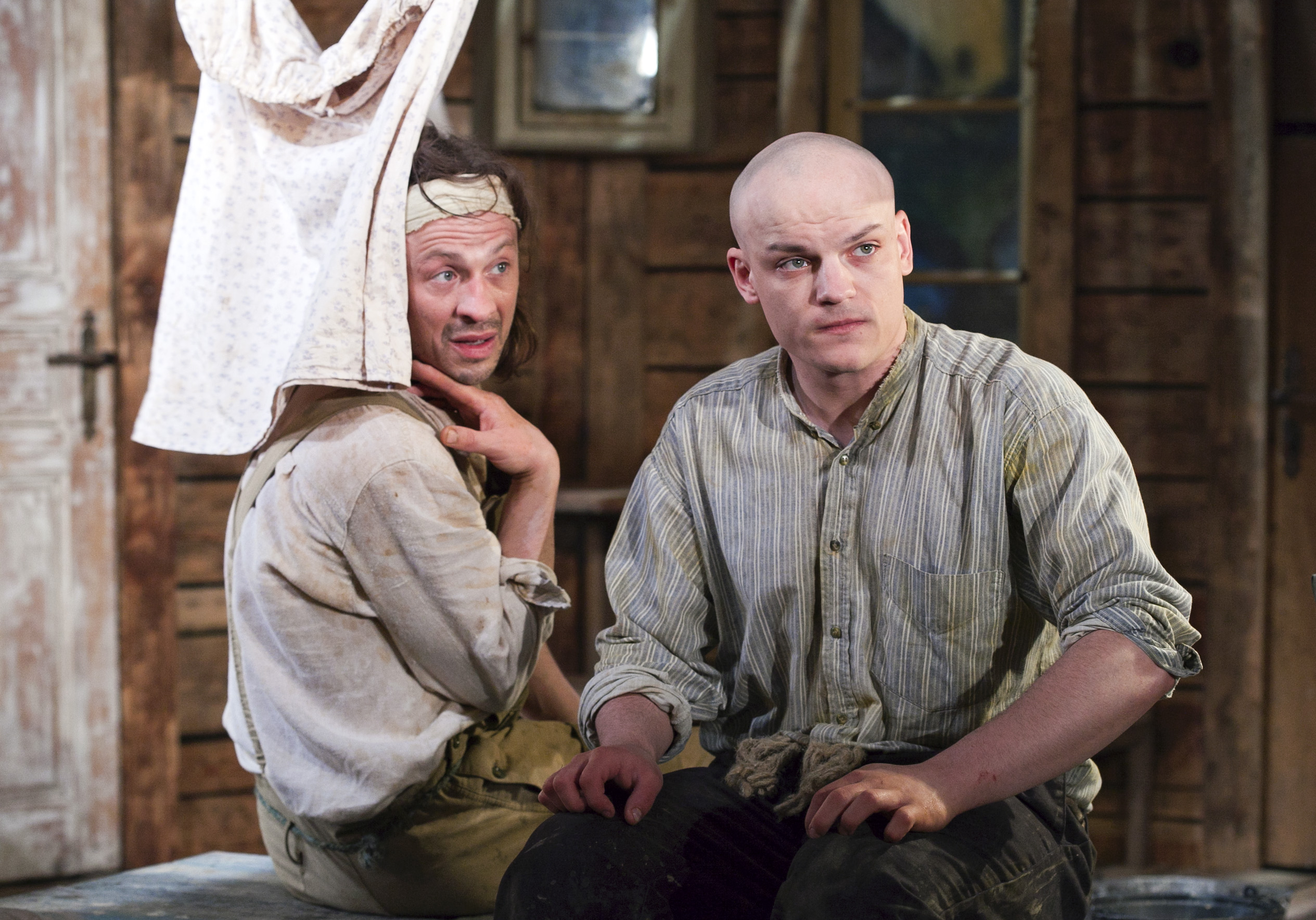 Egons Dombrovskis – Miķelis, Kaspars Kārkliņš – Jasis izrādē “Laimesciema podniekdarbnīca” (2011) // Foto – Ziedonis Safronovs