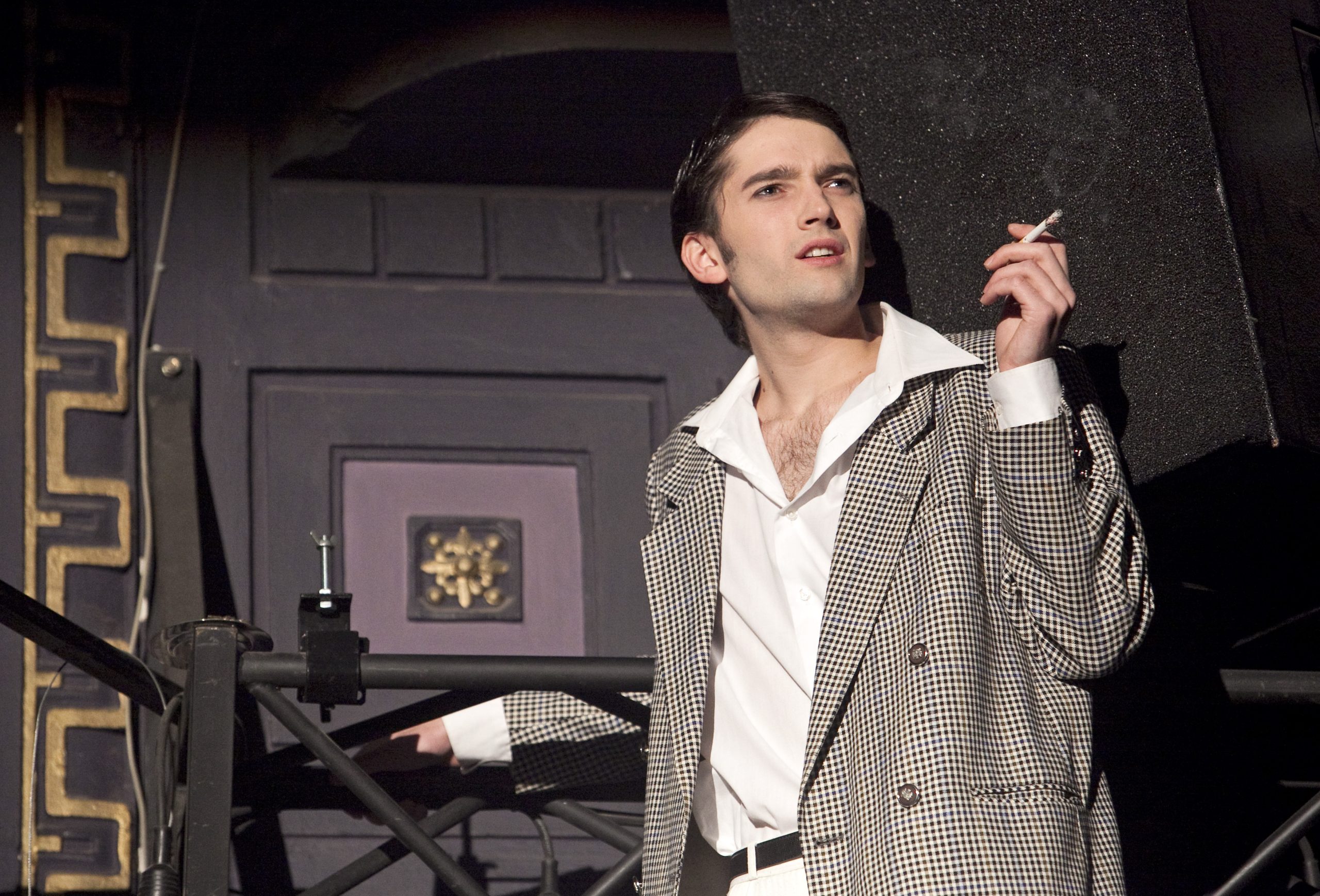 Pēteris Lapiņš Džima O’Konora lomā izrādē „Stikla zvērnīca” (2010) // Foto – Ziedonis Safronovs