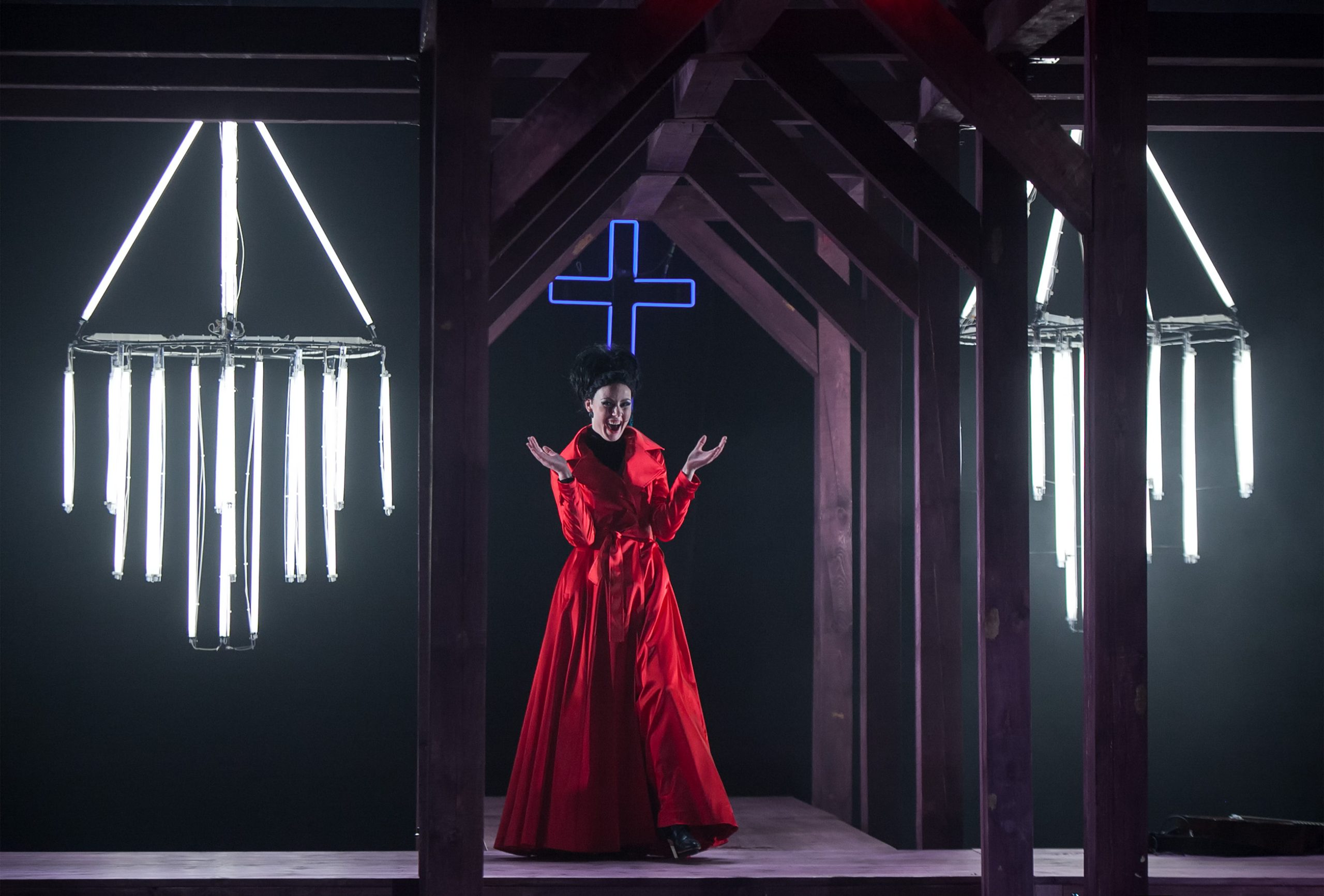 Signe Ruicēna Lukrēcijas Bordžijas lomā izrādē “Lukrēcija Bordžija” (2013) // Foto – Ziedonis Safronovs