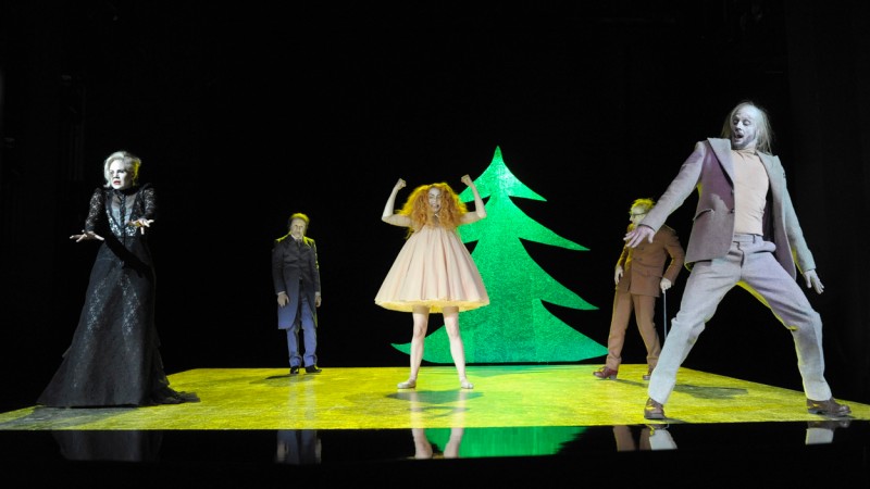 Tā bija absolūti radikāla un negaidīta Ibsena interpretācija, kur lugas pamatteksts tika pat saglabāts, bet intonācija, konteksti un zemteksti veidojās pilnīgi citi, visdažādākajos līmeņos apspēlējot lelles motīvu. Vienīgais vizuālais elements uz tukšās skatuves ar slīpo grīdu – kā no papīra izgriezta, koši zaļa egle (sveiciens eglēm Roberta Vilsona „Melnajā jātniekā”), kas vēlāk arī vilsoniski lēni vai drudžaini pārvietojās pa skatuvi, kad aiz tās slēpās monstrozu kaislību virpuļa dzenātie izrādes dalībnieki. Arī aktrises Manjas Kūlas (Kuhl) Nora ar bālo seju un izzīmētām milzu acīm un kuplu matu sasuku, īsā lelles kleitiņā ar kupliem apakšsvārkiem kārtu kārtām un baleta pačkām kājās atgādināja skumju lelli no bērnu zīmējuma. Taču lelle itin drīz pārvērtās par Lolitu, kuras kuplo svārkapakšu kāds nemitīgi cilāja, sākot ar viņas vīru Helmeru un beidzot ar Noru pašu. Cienījamais bankas direktora kungs Helmers (Torstens Bauers) aizsāka uzvedumā vērojamo monstrozo karikatūru jebšu dzīvo spoku parādi, ko pārstāvēja trīs vīrieši (viņš, Krogstā un Dr. Ranks, kas te bija pārdēvēts par Kranku (krank – no vācu val. slims), kas kustējās lauzītos vai distrofiskos ritmos un nēsāja pusmaskas/ parūkas ar dažāda garuma šķidriem, izplūkātiem matiem, atstājot atbaidošu iespaidu. Pretstatā šiem nožēlojamajiem vīrieškārtas radījumiem abas sievietes – Nora un Lindes kundze – bija patiešām daiļas, graciozas būtnes ar lieliskiem augumiem un izsmalcinātu kustību grāciju. Nora palaikam izpildīja kādu baleta numuru, bet Kristīne Linde (Nora Bucalka (Buzalka)) savā pirmajā uznācienā apveltīja viņu ar tik kvēlu skūpstu uz lūpām, ka Norai no tā tik tikko izdevās atsvabināties.