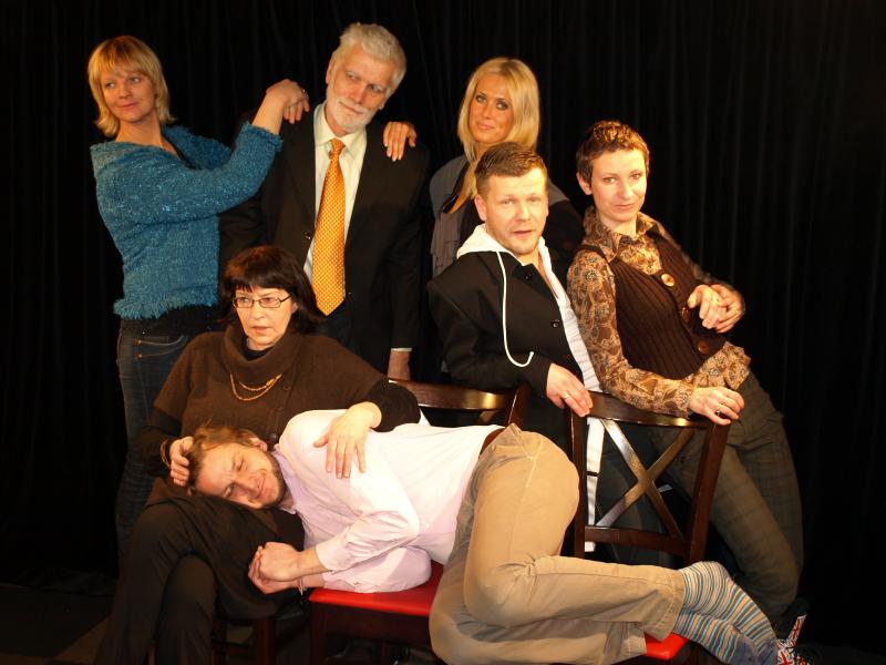 Mūsu pirmā tikšanās norisinājās dienas vidū kaut kādā kafejnīcā un esmu pilnībā aizmirsusi, kādā. Stīvām kājām un drebošu sirdi devos tikties ar saviem ”kolēģiem”, tiem, kuriem bija pieredze uz skatuves, itin visiem, izņemot man! Sprigans, smuks un smējīgs nāca kordiriģents Ints Teterovskis, kurš nupat spoži bija nospēlējis savu „lomu” TV šovā „Koru kari”. Aiz viņa nāca vēl viens skaistulis, tomēr jau pavisam citā rangā – Dailes teātra aktieris Aivars Siliņš. Tad kafejnīcā iespurdza apžilbinošā Jana Duļevska un interesantā Anna Šteina. Par šīs trijotnes profesionalitāti vispār nav ko runāt. Beidzamais ieradās dramaturgs, aktieris un izrāžu organizators Kārlis Anitēns, kuru es, paldies Dievam, jau pazinu kā cilvēku, kurš var visu, un arī mūsu režisore Baiba Rožkalne. Tā mēs visi satikāmies, viens otru aplūkojām, gaisā švirkstēja zobgalības un jociņi, un normālā situācijā cilvēks nomierinātos un saprastu, ka aktieru ansamblis mazajā ludziņā būs jautrs un draudzīgs, bet es ne tuvu tā nejutos. Ko viņi domāja par mani? Nu labi, uzrakstījusi lugu, bet, kāpēc taisās tur arī spēlēt?
