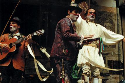 Brazīlijas teātra grupa no Belu Orizonti savu Šekspīra stāstu stāstīja sākotnēji pārsteidzošā, spilgtā un kičīgā ielu teātra estētikā. Šis iestudējums tapis jau 1992. gadā sadarbībā ar režisoru Gabrielu Villelu, kurš iedrošinājis trupu pazīstamo, klasisko mīlas traģēdiju iestudēt viņu ierastajā ielu teātra estētikā, izmantojot masku tehniku, ievijot tautiskas dejas un dziesmas un meklējot savu (un lugas varoņu) identitāti mūsdienu urbānajā haosā un džungļos. Jau 20 gadus šis iestudējums veiksmīgi ceļo pa pasauli un ir paviesojies arī uz Globe skatuves (2000), izpelnoties gan kritiķu, gan skatītāju atzinību un veiksmīgi pildot kasi. Un pierādot, ka hrestomātisko Šekspīra tekstu var apbrīnojami dzīvi un mūsdienīgi interpretēt arī karnevāla stilistikā.