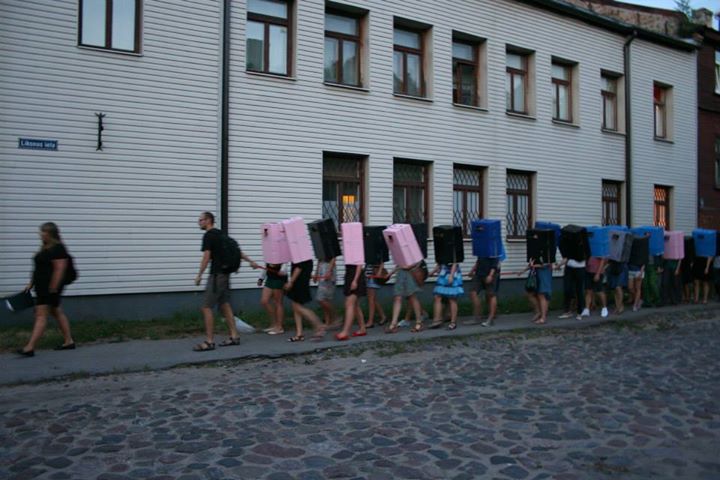 Pēc neliela pārtraukuma bija iespēja piedalīties spēlē tieši 34 cilvēkiem, līdz ar to notika bezmaz vai sacensības, kurš pirmais tiks līdz Paulai [Pļavniecei]. Tad nu mēs tikām iepazīstināti ar spēles noteikumiem un Portālu. Tātad Portāls – kartona kaste ar caurumiem elpošanai sānos, vaļēju apakšu un atveramu un aizveramu lodziņu acīm, meitenēm – rozā krāsā, puišiem – zilā, unisex – melnā un viena mistiskā – pelēkā. Tad nu mēs visi izgājām uz ielas, starp mums novilka striķi, pie kura jāpieķeras, kā tagad tas notiek bērnudārzos, kad bērniņus ved pastaigā pa centru. Uzvilkām savus Portālus un maziem, nedrošiem solīšiem čunčinājām uz priekšu. Skatlodziņi mums tika atvērti – diezgan ilgi domāju, vai tas tāpēc, lai mēs redzētu labo mākslu? Kāds bija mērķis – atšķirt labo no sliktās mākslas, vai arī tāpēc, lai mēs spētu novērtēt to, cik ikdienā mums ir neierobežots skatījums uz lietām?