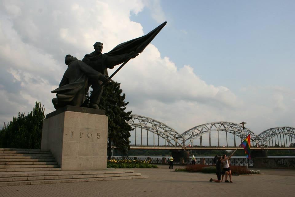 7. augustā plkst. 18:00 – 19:00 pie 1905. gada pieminekļa norisinājās režisora Valtera Sīļa protesta performance „2005. gada 23. jūlija piemineklis”. Performance sākās ar gājienu no Dirty Deal Teatro telpām uz 11. novembra krastmalu, varavīksnes karogam pa priekšu vareni plīvojot Jāņa Baloža rokās. Aiz karoga sekoja pārējā teātra saime un citi interesenti. Pie 1905. gada pieminekļa gājiens apstājās, un sanākušie cilvēki, sadaloties pāros pa divi, pēc kārtas pieminekļa pakājē ieņēma tādu pašu pozu, kāda vērojama piemineklī. Cilvēki kļuva par tādu kā otru nekustīgu pieminekli blakus jau esošajam. Ik pa laikam cilvēki tika nomainīti, un veselu stundu varavīksnes krāsu karogs pievērsa garāmbraucošo mašīnu un garāmgājēju uzmanību.