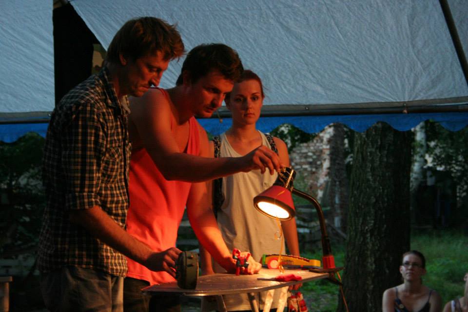 Turpinājumā apmeklētāji tika aicināti pārkārtoties ar skatu uz spēles laukumu, kas bija iekārtots priekšplānā no vecām durvīm darinātam mūrim. Šķita, ka lielākā daļa atkritumu jaunajā Rīgas kultūrpunktā tika izvākta pavasara talku laikā, tomēr festivāla dalībniekiem nez no kurienes ik vakaru izdevies izrakt vēl dažnedažādus krāmus, kas tika izmantoti izrāžu scenogrāfijai. Šajā vakarā par to bija rūpējies scenogrāfs Uģis Bērziņš, kurš spēles laukuma centrā novietoja vecu krēslu, koku zaros iekāra padomju estētikas lustru, spēles laukumā iekombinēja vecus radio, bet caurumu durvīs padarīja par televizora ekrānu. Režisore Inga Gaile dienas laikā uzmestajā izrādes skicē “Pozitīvās izslēgšanas” tēmu izvēlējās apspēlēt no cita aspekta. Nelielās izrādes galvenā varone, kuru atveido aktrise Ance Muižniece, nelielās performances laikā izslēdz televizoru un radio. Mediji pārpludināti ar negatīvām ziņām – nelaimes gadījumi, katastrofas un ātrie kredīti, tāpēc izrādē to izslēgšana tiek parādīta kā pozitīvi vērtējams akts. Pārējie varoņi (aktieri Armands Berģis un Artūrs Putniņš), tikai nomainot Līksnas ielas pagalma piedāvāto garderobi, spēles manierē bija saglabājuši iepriekšējā vakara izrādes noskaņu, kas radīja asociācijas ar improvizācijas teātri.