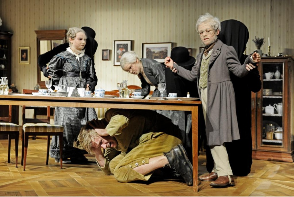 Kā teātrī likt kritiski paskatīties uz cilvēku? Tas ir jautājums, par ko nākas domāt, skatoties Alvja Hermaņa „Vasarniekus”, kur uz skatuves dzīvojas nevis cilvēki, bet piecpadsmit kretīni karikatūras formātā, par kuriem viss ir skaidrs pirmajās desmit minūtēs, bet izrāde turpinās vēl trīs stundas, neatklājot par cilvēku vairs pilnīgi neko. Vien jaunās un jaunās estētiskās mežģīnēs reproducējot cilvēka trulumu un dzīvniecisko dabu. Noskatījos „Vasarniekus” divreiz, un no visas izrādes palika pāri tikai šis viens jautājums. Un nevis konceptuālas domstarpības – par ko tad īsti ir Gorkija „Vasarnieki”? Jo galu galā ir vienlīdz cienījami aplūkot kā cilvēku un viņa dabu tuvplānā, tā rosināt domāt par sabiedrību kopumā. Iespējams, izrāde iedarbotos pavisam citādi, ja nostrādātu humors, kas Hermaņa „Vasarniekos” ir iekodēts un kā lasīšanas kods arī iedots pašā izrādes sākumā, kad advokāts Sergejs Basovs elektrības vados neveikli mēģina pakārties, kamēr viņa sieva turpat līdzās uz kušetītes kaist erotiskos sapņos un alkās, un viņu starpā sākas teju beketisks dialogs. Tomēr vācu aktieru tehniskā spēles veida dēļ humors nespēj aizšķilties un piepildīt visu izrādes telpu, kā tas pirms daudziem gadiem notika Hermaņa „Revidentā”, kas viņam un Jaunajam Rīgas teātrim arī izlauza ceļu uz pasauli. Caur smiekliem un asarām.