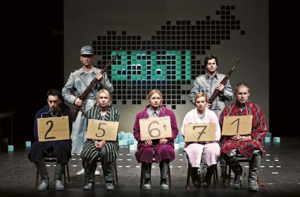 No slovēņu režisora Olivera Frljiča izrādes „25.671” // Publicitātes foto