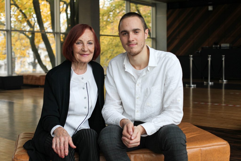 Dodoties prom no izrādes uz festivāla bāru, kas atrodas tieši vienā stāvā ar jumta terasi, no kuras paveras opera un pilsētas panorāma, es satieku “Es divi/ Mēs, kliķe” veidotājus. Tā ir horeogrāfe Airida Gudaite (Airida Gudaitė), režisors Jons Tertelis (Jonas Tertelis) un producents Laurins Žakēvičs (Laurynas Žakevičius), kurš pats arī ir horeogrāfs un kopā ar Aridu ir deju kompānijas LOW AIR dibinātāji. Klāt ir arī viena no izpildītājām. Kaut kā ziedošana bieži aizved pie kaut kā cita, ko iepriekš neesam ieplānojuši. Mūsu saruna ar režisoru izvēršas gara un aizraujoša. Saruna aizved arī līdz citam Jonam – filmu veidotājam Jonam Mekam. Es ceru, ka šī izrāde pavisam drīz varētu būt Rīgā, jo gaidīt nevar – jaunieši drīz būs kļuvuši par veciešiem. Kaut gan man un Kristai ir mīļa draudzene, kura ir piecas reizes vecāka par astoņpadsmitgadīgo, un, ticiet man, viņa ir tik jauna, ka astoņpadsmit svecītes būs tieši laikā.