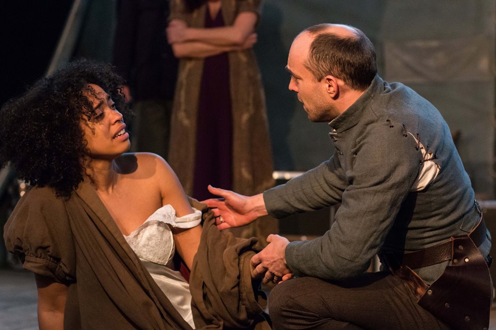 Skats no izrādes „Tits Androniks”: Saturnīns – Metjū Nīdhems, Tits Androniks – Viljams Haustons, Tamora – Indira Varma // Publicitātes foto