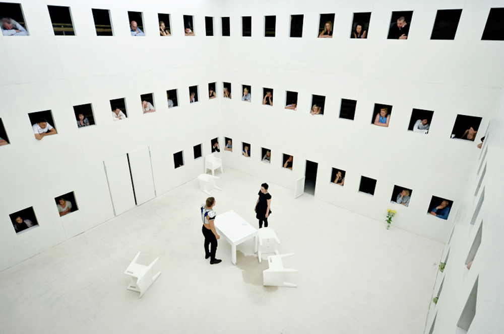 Skatītājs vienmēr ir daļa no izrādes. Bez viņa izrāde nenotiek. Viņš var būt izrādes redzamā daļa un var būt arī neredzamā – ar neredzamo daļu domājot tradicionālo modeli „skatītājs – skatuve”, kur skatītājs atrodas zālē. Sākot domāt par scenogrāfiju, vienmēr par šiem diviem modeļiem arī domāju.