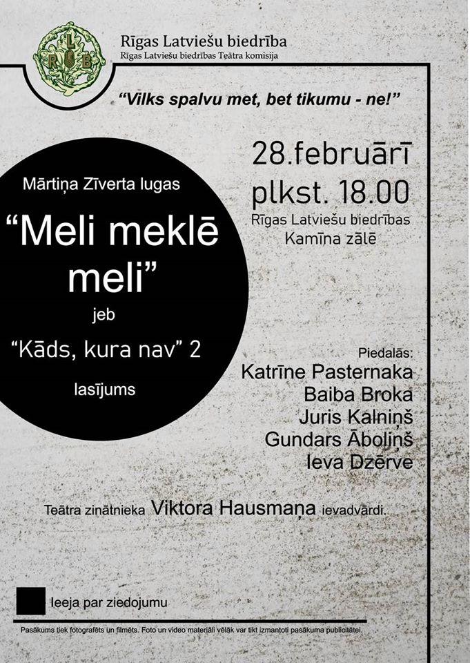 28. februārī notiks Mārtiņa Zīverta lugas “Meli meklē meli” lasījums